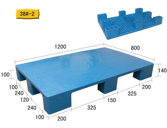 產(chǎn)品型號: HD-1208JP1 產(chǎn)品貨號: T38#-2 產(chǎn)品外尺寸: 1200×800×140 產(chǎn)品內(nèi)尺寸: 產(chǎn)品結(jié)構(gòu): 九腳平板 產(chǎn)品內(nèi)容量(L): 承重量(T): 動載:1T 靜載:4T 貨架:X 產(chǎn)品認可標準: ISO9001:2000質(zhì)量體系認證 此款塑料托盤適用平地墊倉使用,防潮效果好,且易于清洗;