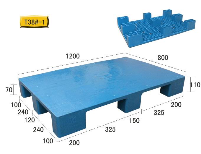 產(chǎn)品型號(hào): HD-1208JP1 產(chǎn)品貨號(hào): T38#-1 產(chǎn)品外尺寸: 1200×800×110 產(chǎn)品內(nèi)尺寸: 產(chǎn)品結(jié)構(gòu): 平板九腳 產(chǎn)品內(nèi)容量(L): 承重量(T): 動(dòng)載:1T 靜載:4T 貨架:X 產(chǎn)品認(rèn)可標(biāo)準(zhǔn): ISO9001:2000質(zhì)量體系認(rèn)證 此款塑料托盤適用平地墊倉使用,防潮效果好,且易于清洗;